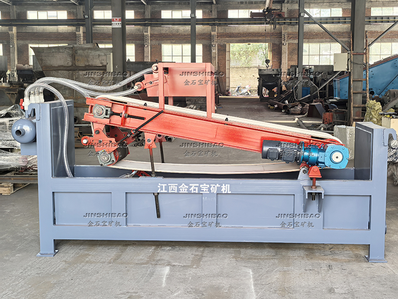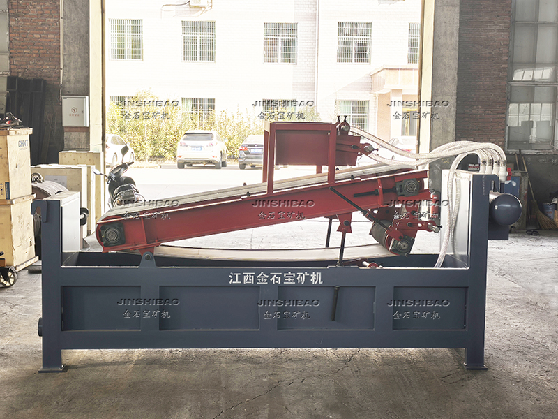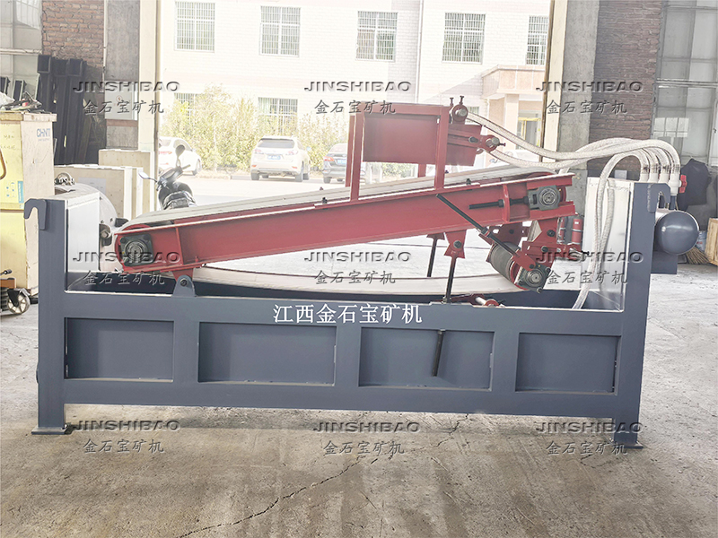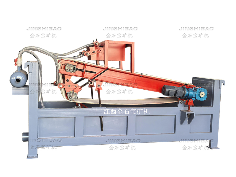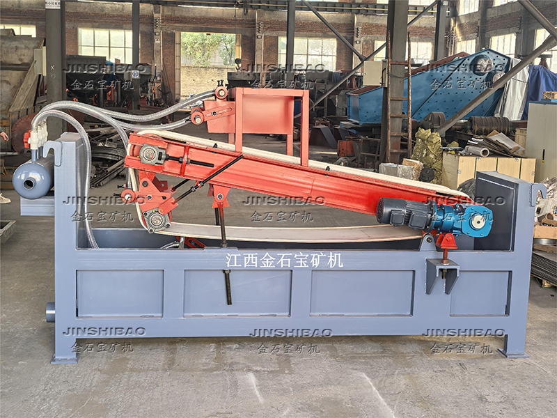 平板磁选机,采用带式分选结构,在整个工作区域从进料到出料物料在皮带的带动下,可对物料进行多次磁搅拌,同时在水流的冲洗作用下,把不含磁的尾矿除去,带有磁性的矿物被皮带输送到板选机的脱磁区,从而将带有磁性的矿物通过脱磁装置脱掉,来完成选矿的过程,整机功率小、处理大,磁场强度高,并达到很好的品质,能够获得更大的效益。